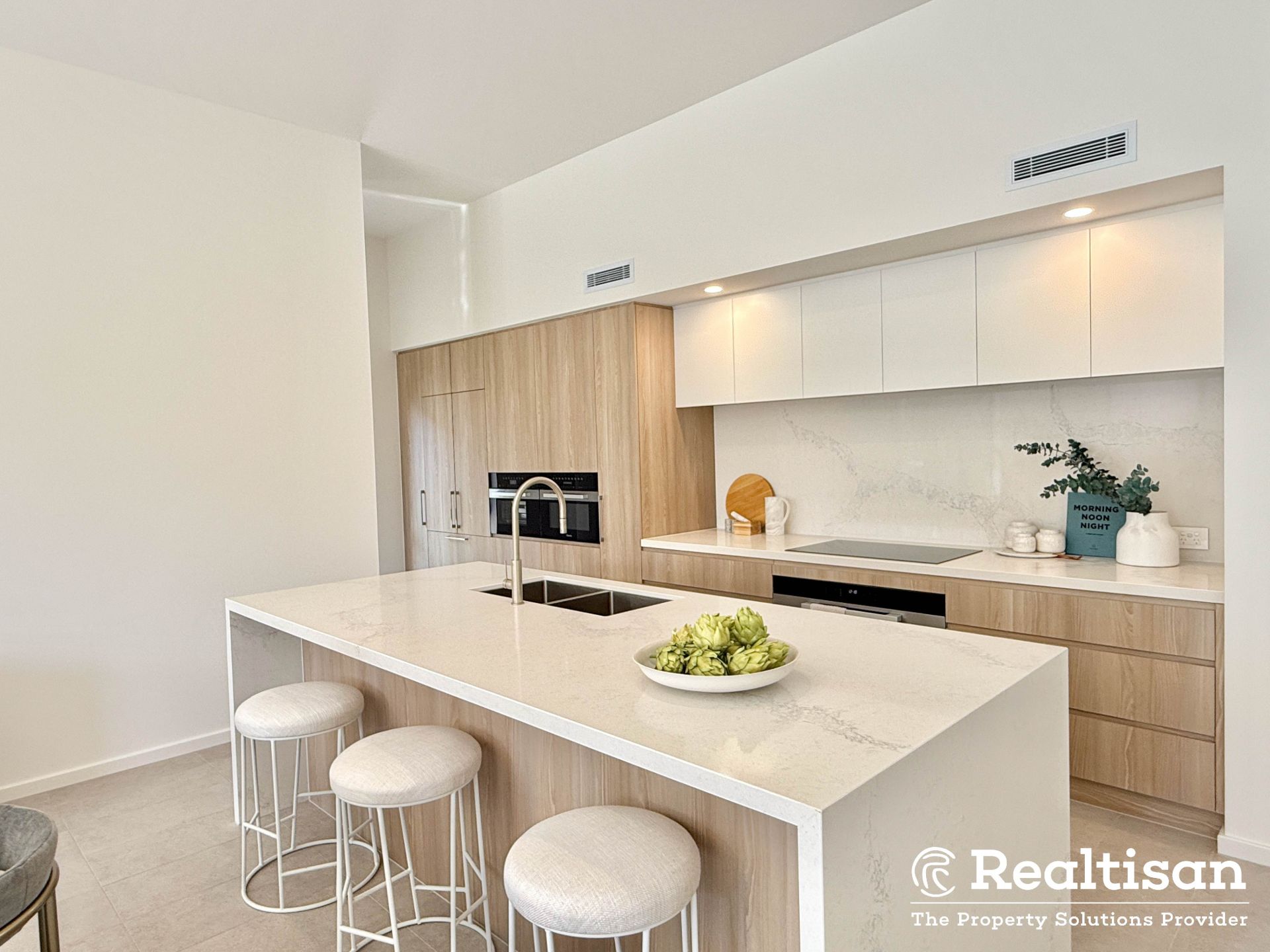 - Caesarstone benchtops throughout, waterfall edge to kitchen island bench