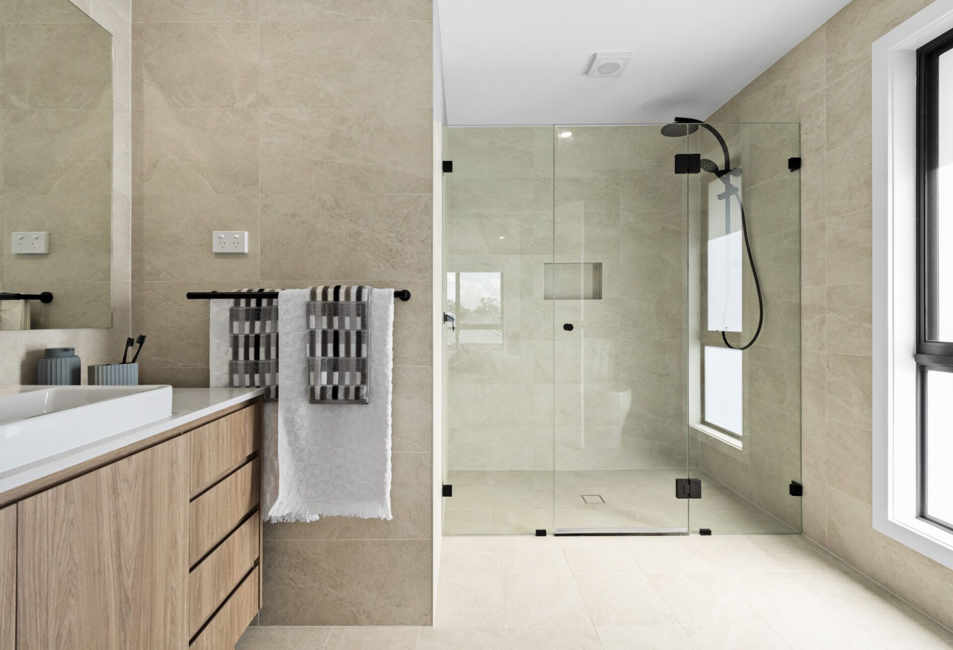 - Engineered oak timber flooring elevates the style on the ground floor living areas, complemented by sleek frameless glass shower screens and LED downlight for a modern touch
